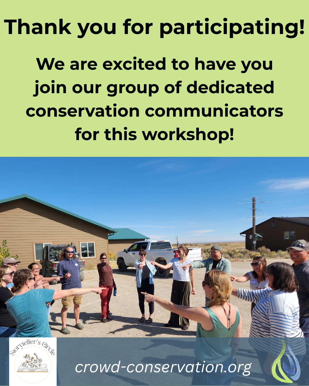 This workshop will be held in conjunction with the Western Collaborative Conservation Network’s Confluence conference, which will be held May 18-21. You don’t need to attend Confluence to attend the Storyteller’s Circle workshop, but we highly recommend that you do!